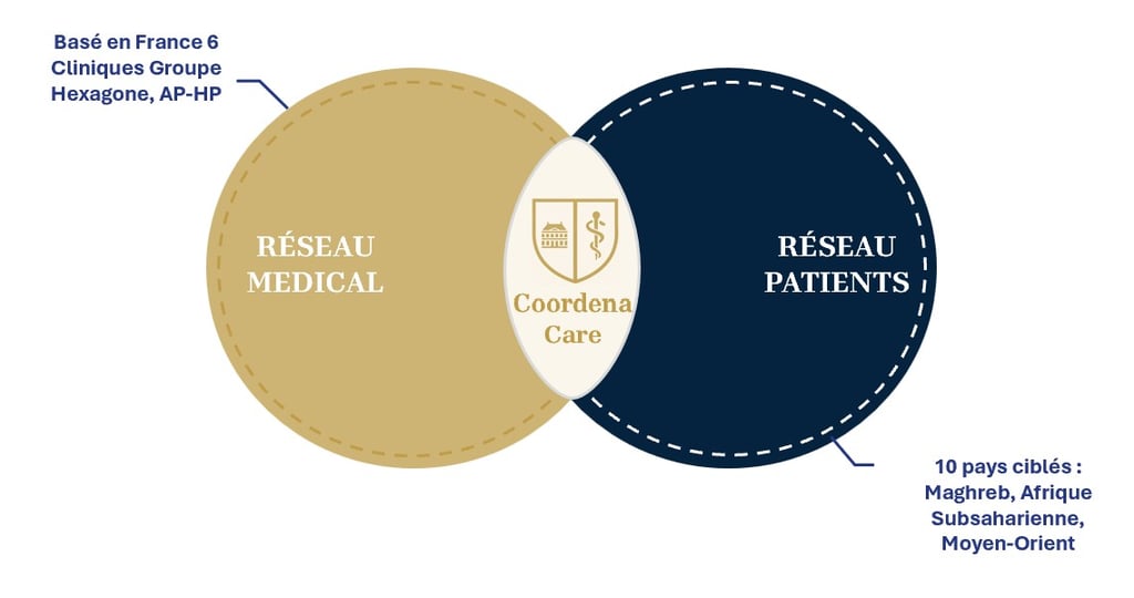 Nous nous appuyons sur un réseau médical d’excellence basé en France – regroupant des cliniques de référence telles que celles du Groupe Hexagone et de l’AP-HP – et sur un réseau patients couvrant 10 pays prioritaires (Maghreb, Afrique subsaharienne, Moyen-Orient).